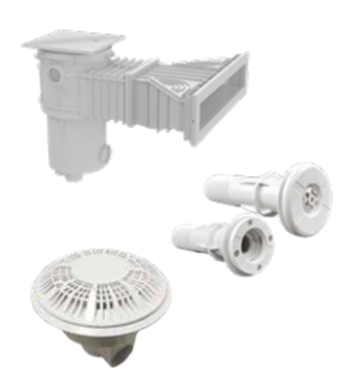skimmer, prese di fondo e bocchette di mandata, assicurando una corretta circolazione dell’acqua. Il kit è completato da